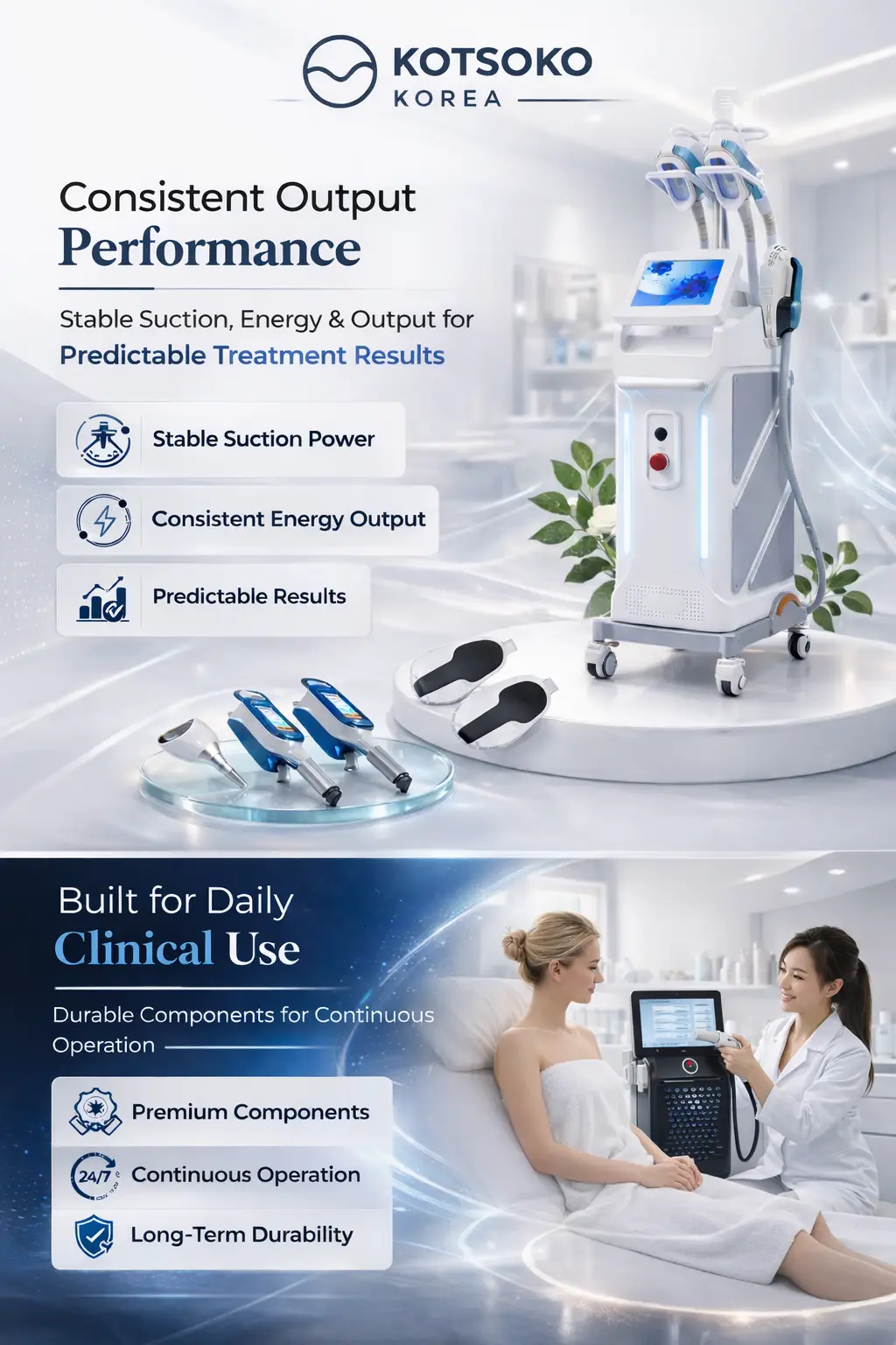 Kotsoko Korea delivers reliable, performance-driven aesthetic devices designed for professional use. Our systems focus on stable output, safety, and long-term durability.